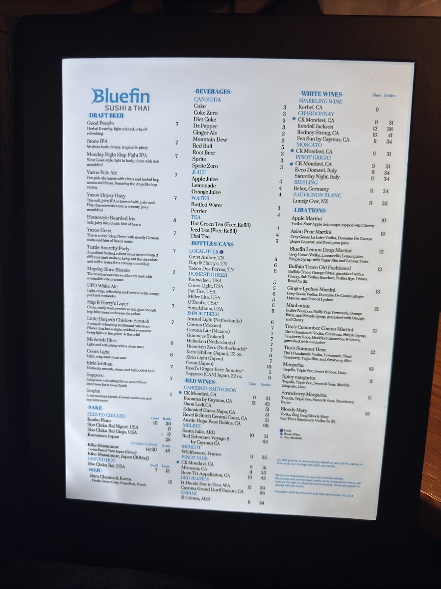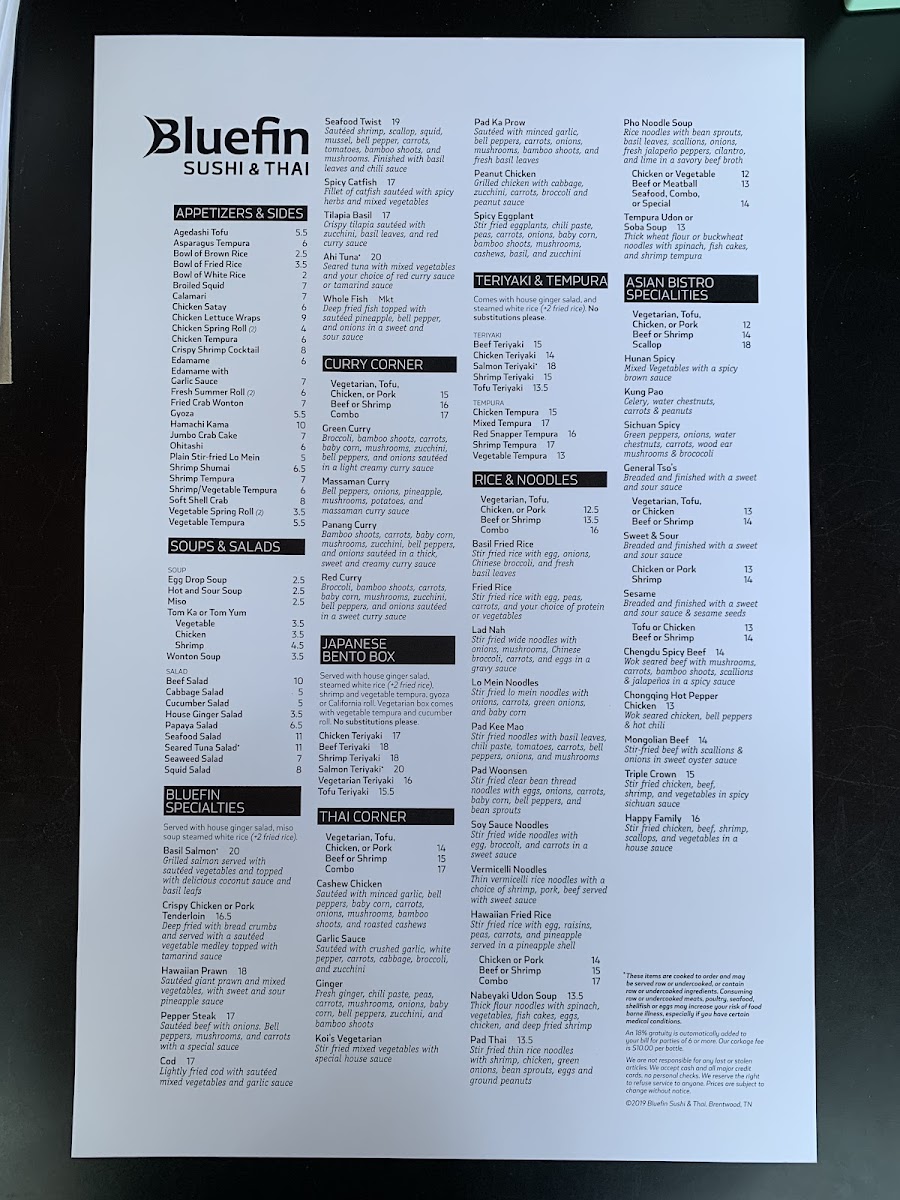 Welcome to Bluefin Sushi & Thai Brentwood, a culinary gem nestled in Brentwood, TN. This restaurant is celebrated for its exceptional sushi and enticing Thai dishes, making it a go-to destination for sushi lovers and casual diners alike. Located at 210 Franklin Rd, Bluefin creates an inviting atmosphere perfect for various occasions, from casual family dinners to special celebrations.